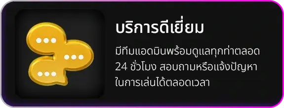 ตอบ : เว็บไซต์ยึดถือหลักการ "สมาชิกคือคนสำคัญ" โดยมีทีมงานมืออาชีพสแตนด์บายผ่านช่องทาง Line Official ตลอด 24 ชั่วโมง เพื่อแก้ไขปัญหาทางเทคนิค ให้คำปรึกษาด้านการใช้งาน และแจ้งสิทธิพิเศษโปรโมชั่นใหม่ๆ อย่างต่อเนื่อง